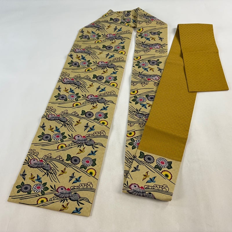 【名古屋帯】 黄色系 薄黄土色 逸品 A 帯丈366cm~400cm 30000- 美品 五万以下