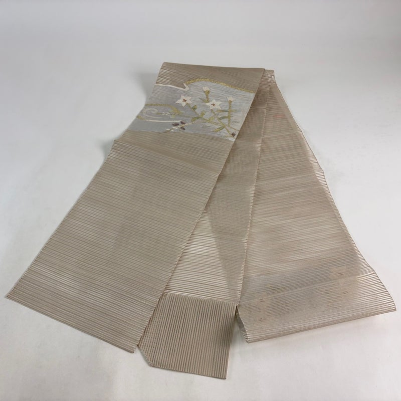 夏帯でございます。 セミフォーマルでお使いいただける名古屋帯でございます。 見る人に重たい印象を感じさせない女性ならではの、気品豊かな一品です。 裏地に点シミがございます。 リユース品としては良い状態で、まだまだご活用頂けると思われます。 ※なお、厳しく商品の状態確認を行っておりますが、記載の汚れ以外にも見落とし箇所がある可能性がある旨ご了承いただけますと幸いです。 沢山の商品の中からご覧いただき誠にありがとうございます。 ※保管によるにおい移りがございます。