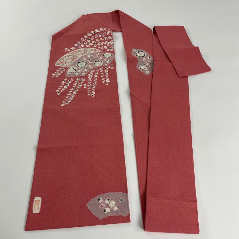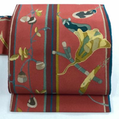 【名古屋帯】 赤系 ピンク 秀品 A 帯丈366cm~400cm -3980 美品 二万以下