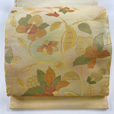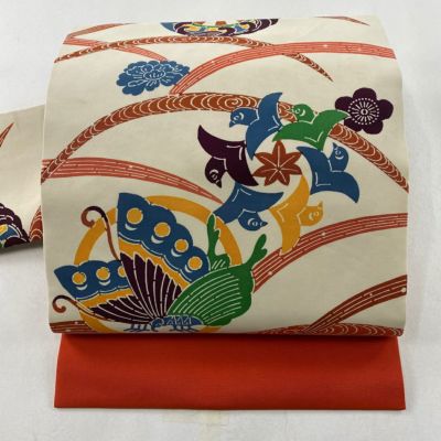 【着物ランク】秀品 【素材】正絹 【帯丈】約345.5cm 【帯幅】約30.5cm 【帯仕立て】仕立て上がり 【状態ランク】ランクB 【帯着用シーン】普段使いの洒落帯(紬・小紋)