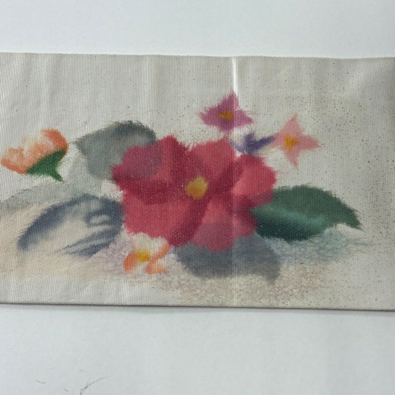 セミフォーマルでお使いいただける名古屋帯でございます。 見る人に重たい印象を感じさせない女性ならではの、気品豊かな一品です。 リユース品としては目立った染み傷なく、大変状態の良いお品でございます。 沢山の商品の中からご覧いただき誠にありがとうございます。