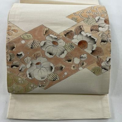 【名古屋帯】 白系 クリーム 優品 A 帯丈355cm以下 4000-7980 美品 二万以下