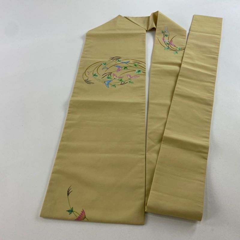 セミフォーマルでお使いいただける名古屋帯でございます。 見る人に重たい印象を感じさせない女性ならではの、気品豊かな一品です。 締め跡がございます。 垂境付近と前柄柄部分にシミ、垂境付近に小さなシミがございます。 リユース品としては良い状態で、まだまだご活用頂けると思われます。 沢山の商品の中からご覧いただき誠にありがとうございます。 【PR2】