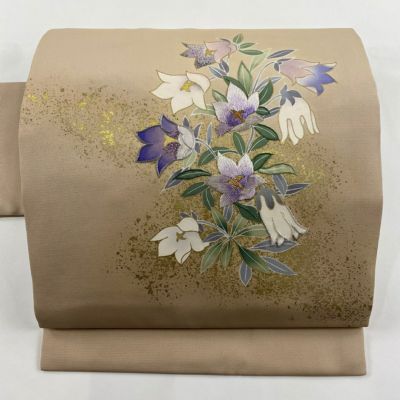 セミフォーマルでお使いいただける名古屋帯でございます。 見る人に重たい印象を感じさせない女性ならではの、気品豊かな一品です。 締め跡がございます。 リユース品としては良い状態で、まだまだご活用頂けると思われます。 沢山の商品の中からご覧いただき誠にありがとうございます。 ※保管によるにおい移りがございます。