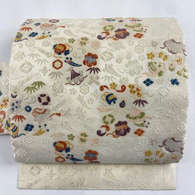 セミフォーマルでお使いいただける名古屋帯でございます。 見る人に重たい印象を感じさせない女性ならではの、気品豊かな一品です。 締め跡がございます。 リユース品としては目立った染み傷なく、大変状態の良いお品でございます。 沢山の商品の中からご覧いただき誠にありがとうございます。