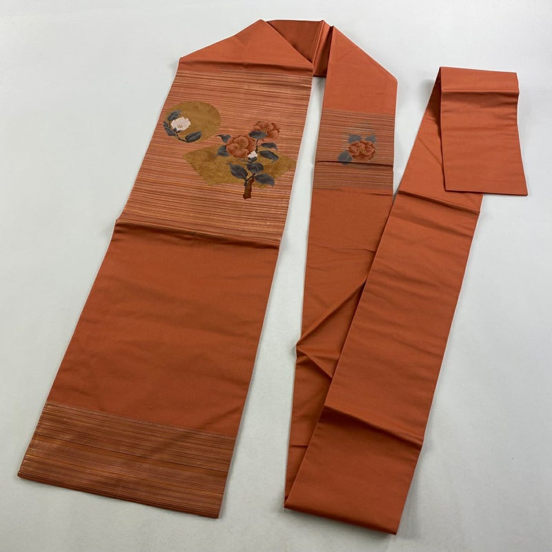 【名古屋帯】 赤系 サーモンピンク 優品 A 帯丈356cm~365cm -3980 美品 二万以下