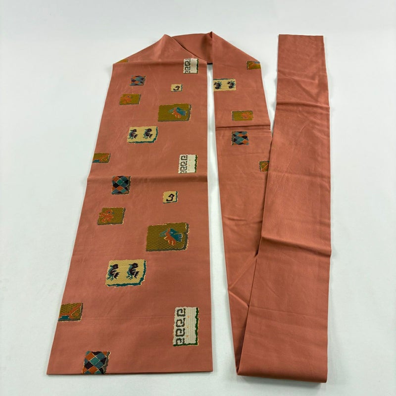 【名古屋帯】 赤系 サーモンピンク 秀品 B 帯丈356cm~365cm 7990-9980 二万以下