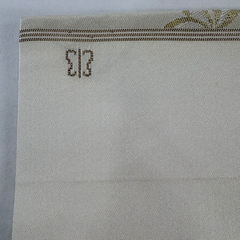 軍配マークと三本線が特徴の「川島織物」謹製の作品です。 セミフォーマルでお使いいただける名古屋帯でございます。 見る人に重たい印象を感じさせない女性ならではの、気品豊かな一品です。 裏地にシミがございます。 リユース品としては良い状態で、まだまだご活用頂けると思われます。 ※なお、厳しく商品の状態確認を行っておりますが、記載の汚れ以外にも見落とし箇所がある可能性がある旨ご了承いただけますと幸いです。 沢山の商品の中からご覧いただき誠にありがとうございます。 【PR2】