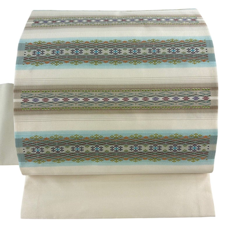 【名古屋帯】 白系 クリーム 逸品 A 帯丈366cm~400cm 30000- 美品 五万以上