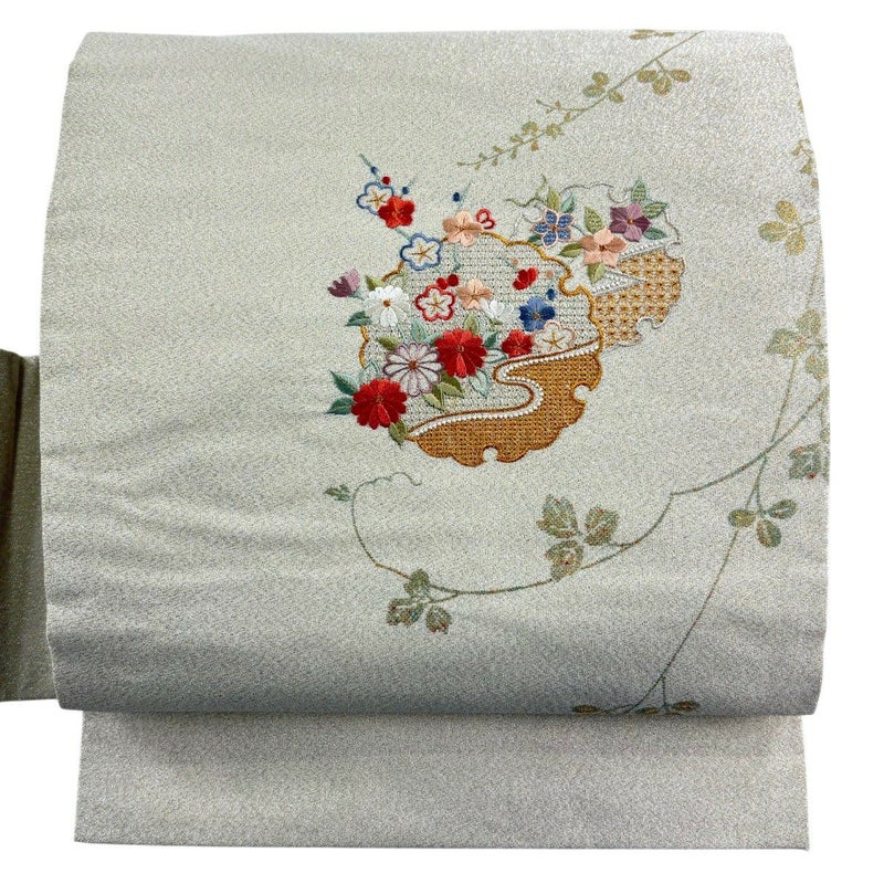 セミフォーマルでお使いいただける名古屋帯でございます。 見る人に重たい印象を感じさせない女性ならではの、気品豊かな一品です。 締め跡がございます。 手先と手先前柄間所々に生地のヨレ、お太鼓垂先間にシワがございます。 裏地に生地のヨレがございます。 リユース品としては目立った染み傷なく、状態の良いお品でございます。 ※なお、厳しく商品の状態確認を行っておりますが、記載の汚れ以外にも見落とし箇所がある可能性がある旨ご了承いただけますと幸いです。 沢山の商品の中からご覧いただき誠にありがとうございます。