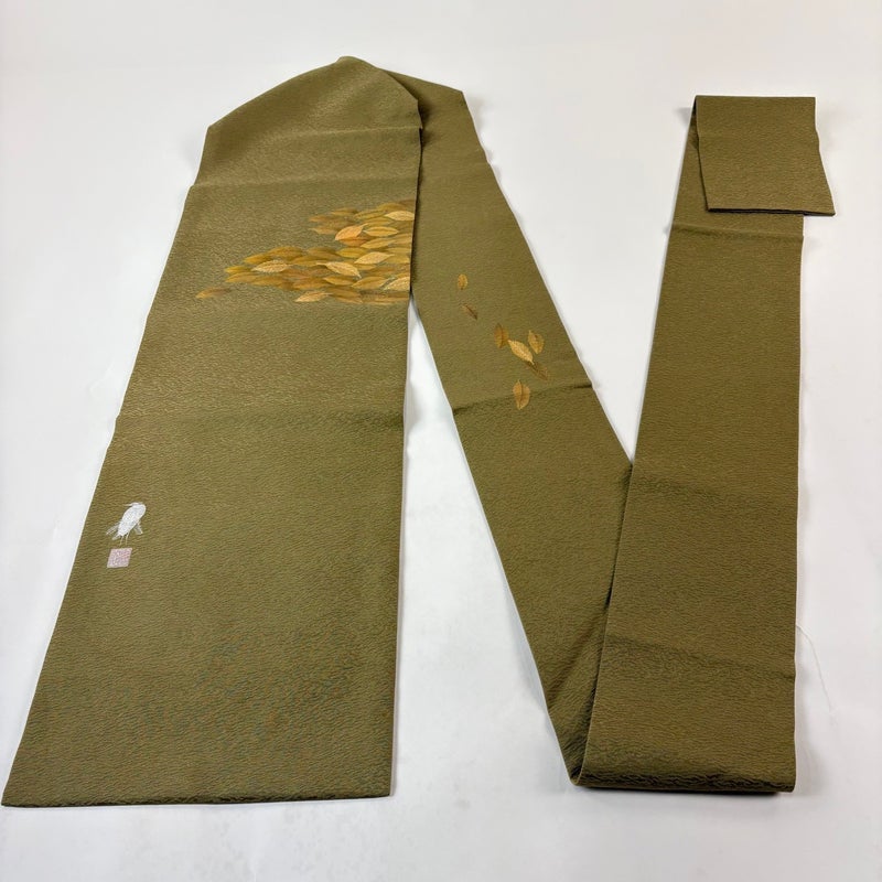 【名古屋帯】 緑系 鶯色 逸品 A 帯丈356cm~365cm 30000- 美品 五万以下