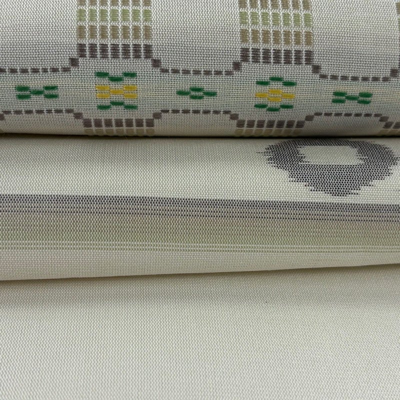 夏帯でございます。 普段使いでお使いいただける名古屋帯でございます。 カジュアルな装いに合わせてお使いください。 締め跡がございます。 ※商品の仕立て上、垂先の織り出し口から裏地がはみ出ております。 リユース品としては良い状態で、まだまだご活用頂けると思われます。 ※なお、厳しく商品の状態確認を行っておりますが、記載の汚れ以外にも見落とし箇所がある可能性がある旨ご了承いただけますと幸いです。 沢山の商品の中からご覧いただき誠にありがとうございます。 【PR2】