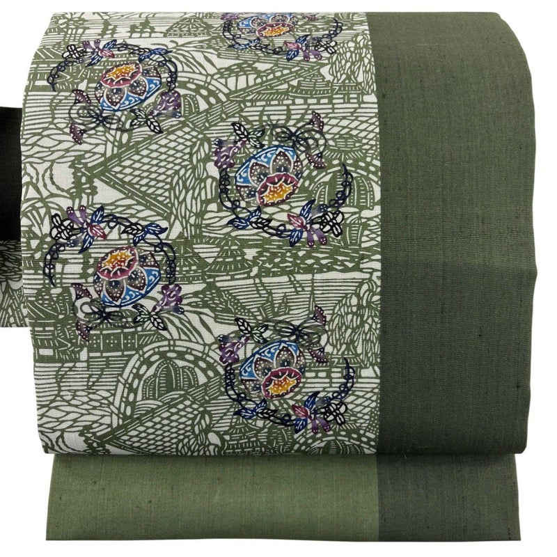 【名古屋帯】 灰色系 灰緑 逸品 A 帯丈366cm~400cm 30000- 美品 五万以上