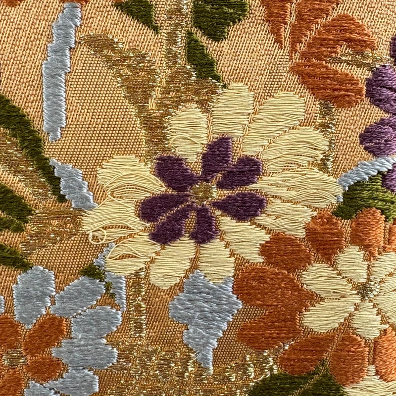 セミフォーマルでお使いいただける名古屋帯でございます。 見る人に重たい印象を感じさせない女性ならではの、気品豊かな一品です。 お太鼓に糸つれ、お太鼓と前柄に糸ゆるみ、前柄垂境間に変色がございます。 リユース品としては良い状態で、まだまだご活用頂けると思われます。 ※なお、厳しく商品の状態確認を行っておりますが、記載の汚れ以外にも見落とし箇所がある可能性がある旨ご了承いただけますと幸いです。 沢山の商品の中からご覧いただき誠にありがとうございます。