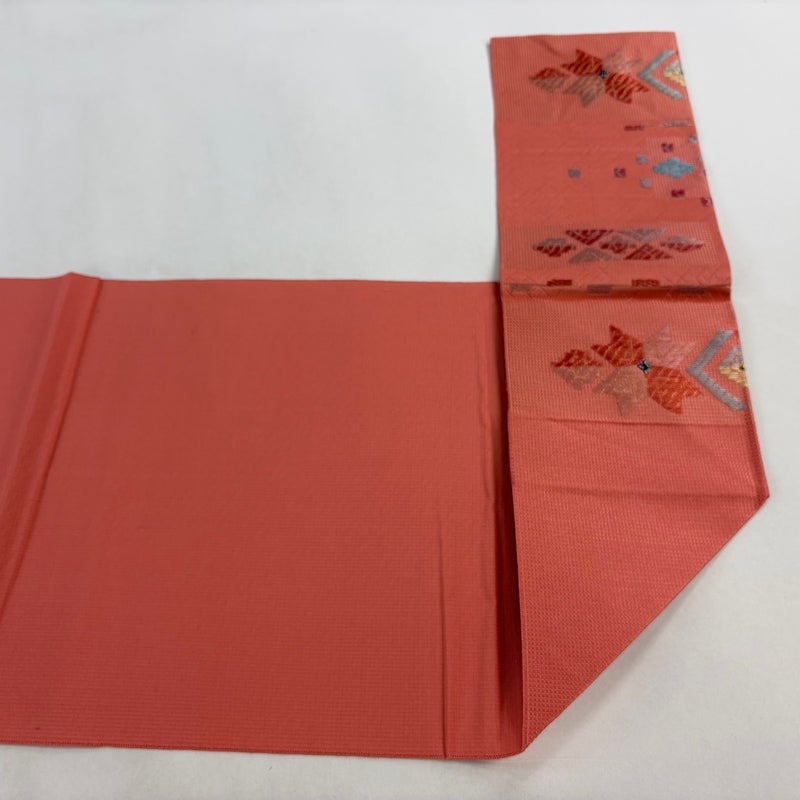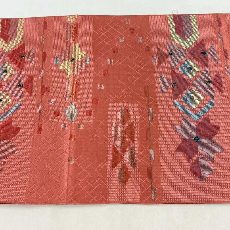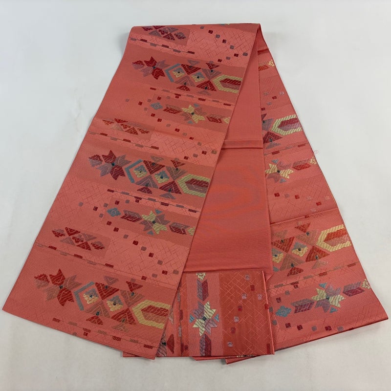 【名古屋帯】 赤系 サーモンピンク 優品 A 帯丈356cm~365cm 4000-7980 美品 二万以下