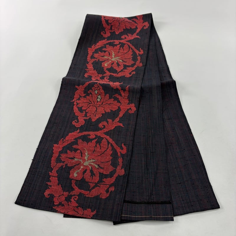 セミフォーマルでお使いいただける名古屋帯でございます。 見る人に重たい印象を感じさせない女性ならではの、気品豊かな一品です。 締め跡がございます。 前柄垂先間にシワがございます。 リユース品としては目立った染み傷なく、状態の良いお品でございます。 ※なお、厳しく商品の状態確認を行っておりますが、記載の汚れ以外にも見落とし箇所がある可能性がある旨ご了承いただけますと幸いです。 沢山の商品の中からご覧いただき誠にありがとうございます。
