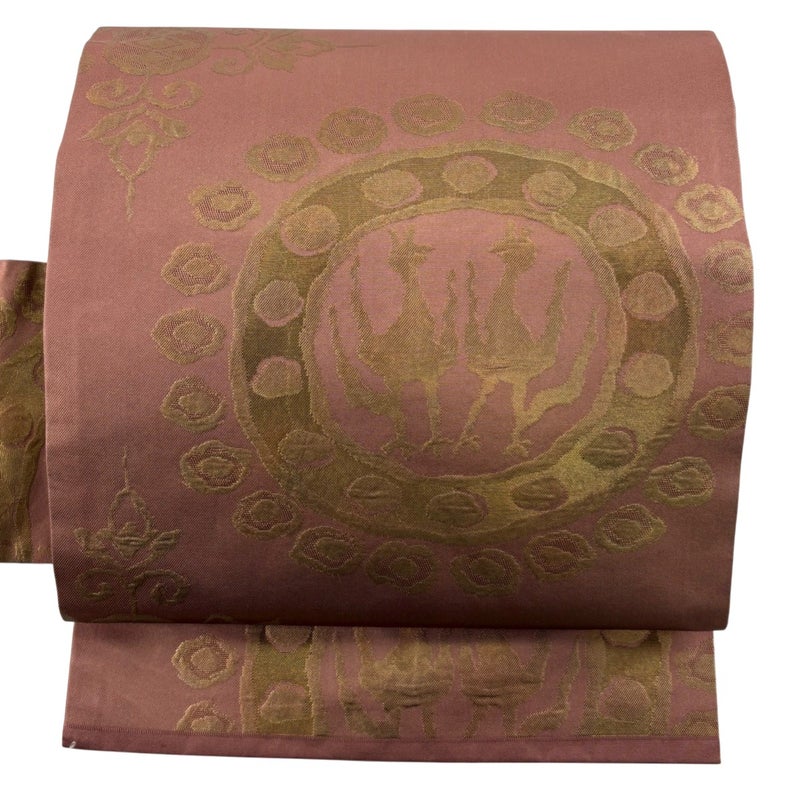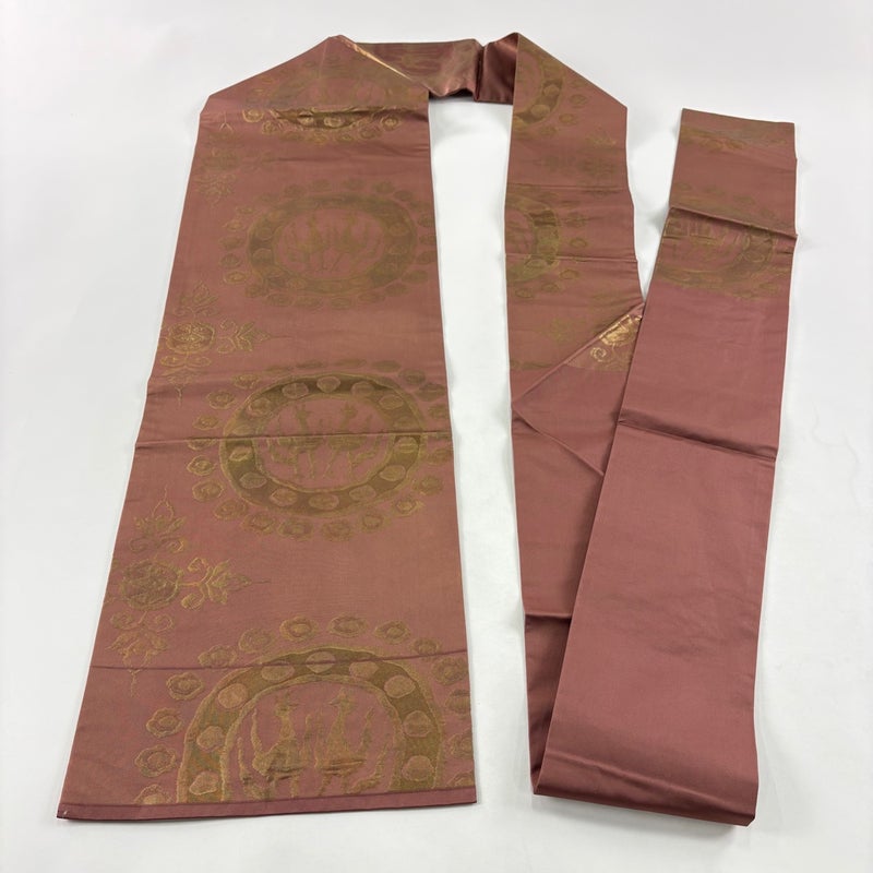 【名古屋帯】 赤系 ピンクベージュ 優品 A 帯丈356cm~365cm 4000-7980 美品 二万以下