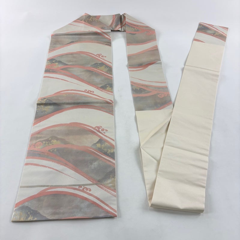 【名古屋帯】 白系 クリーム 優品 A 帯丈355cm以下 4000-7980 美品 二万以下