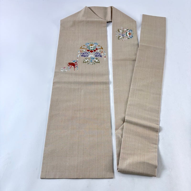 セミフォーマルでお使いいただける名古屋帯でございます。 見る人に重たい印象を感じさせない女性ならではの、気品豊かな一品です。 リユース品としては目立った染み傷なく、状態の良いお品でございます。 ※なお、厳しく商品の状態確認を行っておりますが、記載の汚れ以外にも見落とし箇所がある可能性がある旨ご了承いただけますと幸いです。 沢山の商品の中からご覧いただき誠にありがとうございます。