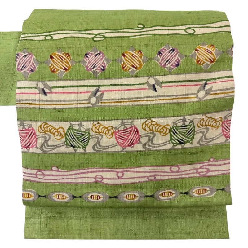 【名古屋帯】 緑系 黄緑色 秀品 B 帯丈366cm~400cm 7990-9980 二万以下