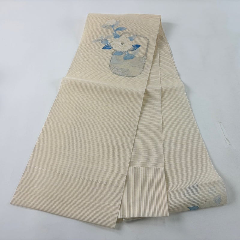【名古屋帯】 白系 ベージュ 秀品 C 帯丈356cm~365cm 7990-9980 二万以下