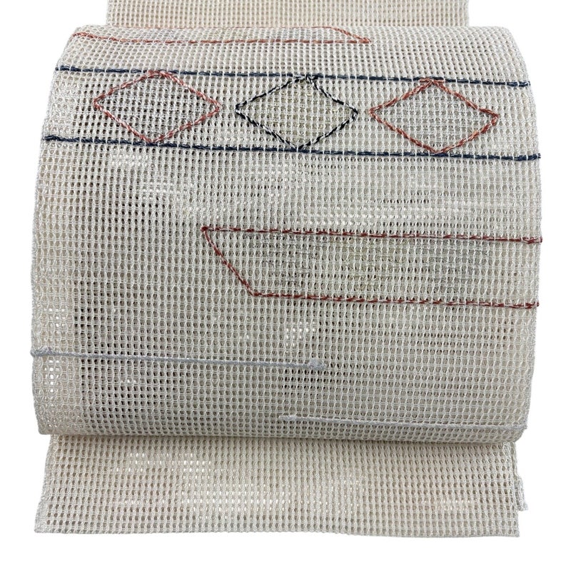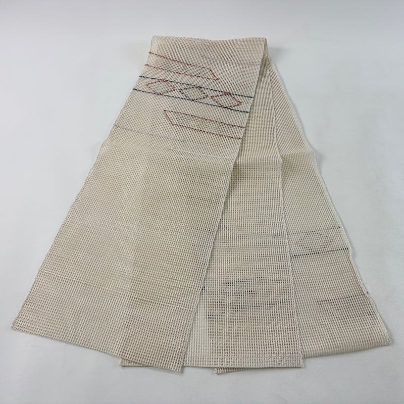 夏帯でございます。 普段使いでお使いいただける名古屋帯でございます。 カジュアルな装いに合わせてお使いください。 締め跡がございます。 手先前柄間に生地のヨレ、前柄お太鼓間にシミ、お太鼓垂先間などに薄いシミがございます。 裏地所々にシミがございます。 リユース品としては良い状態で、まだまだご活用頂けると思われます。 ※なお、厳しく商品の状態確認を行っておりますが、記載の汚れ以外にも見落とし箇所がある可能性がある旨ご了承いただけますと幸いです。 沢山の商品の中からご覧いただき誠にありがとうございます。