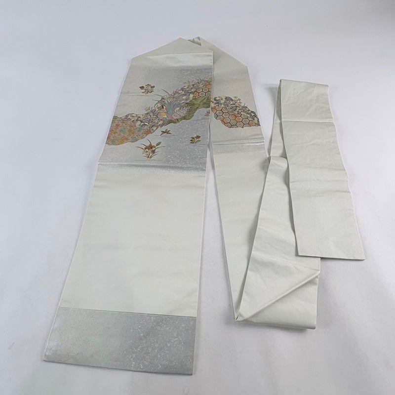 【着物ランク】名品 【素材】正絹 【帯丈】約349.5cm 【帯幅】約30.5cm 【帯仕立て】仕立て上がり 【状態ランク】ランクB 【帯着用シーン】セミフォーマル(色無地・付下げ)
