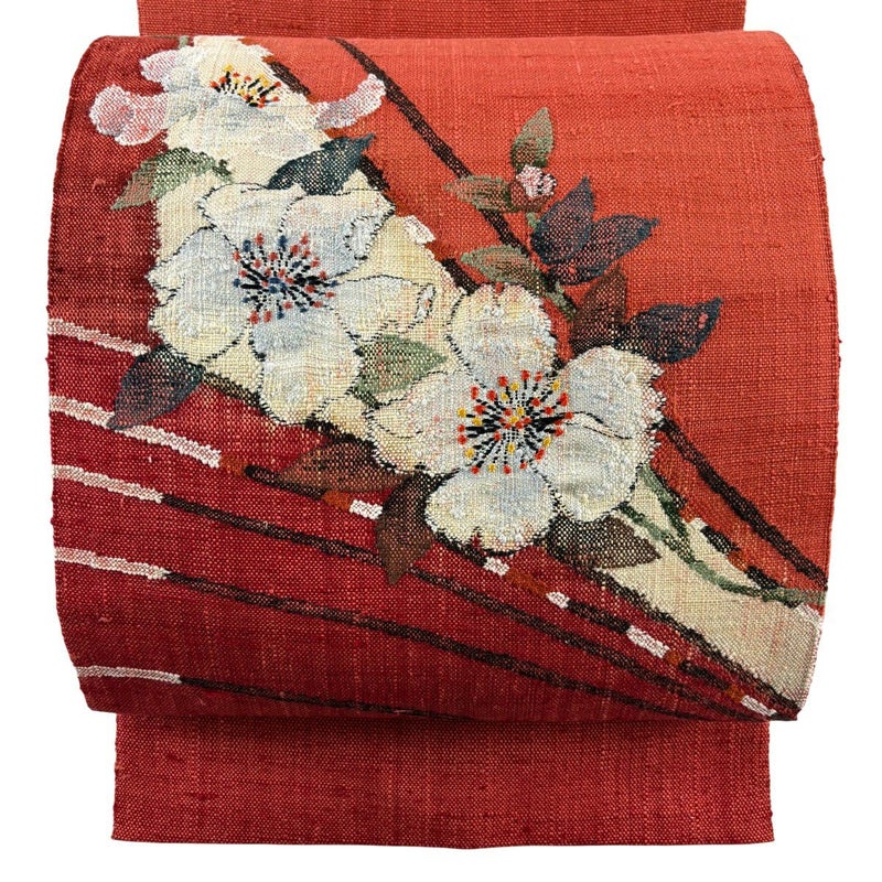 【名古屋帯】 赤系 茜色 優品 B 帯丈366cm~400cm -3980 二万以下
