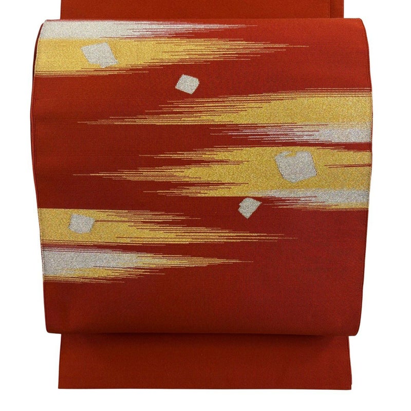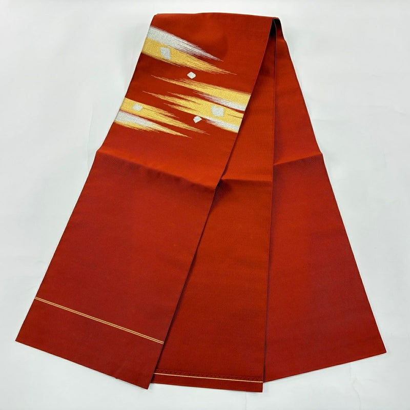 【名古屋帯】 赤系 茜色 優品 B 帯丈356cm~365cm -3980 二万以下