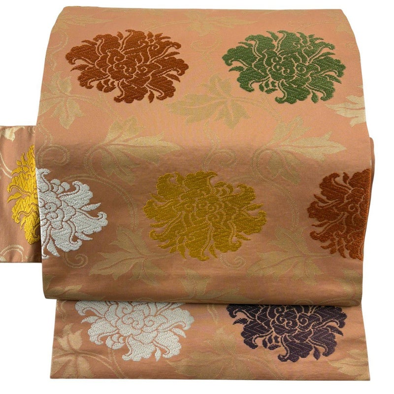 【名古屋帯】 赤系 ピンクベージュ 秀品 B 帯丈356cm~365cm 7990-9980 二万以下
