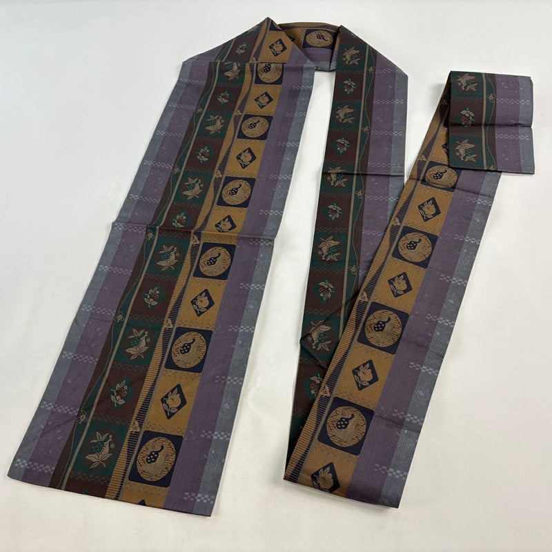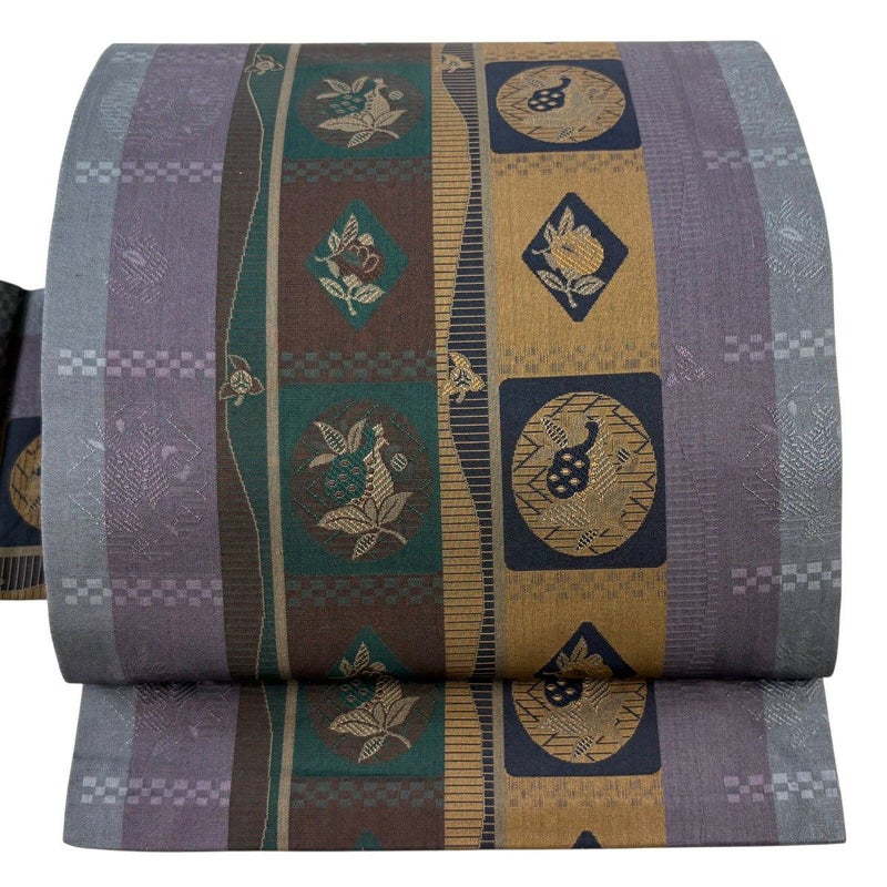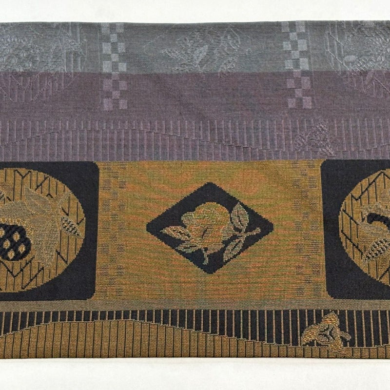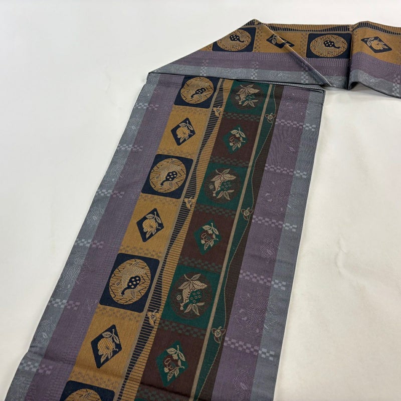 【名古屋帯】 灰色系 灰紫 秀品 A 帯丈355cm以下 9990-29990 美品 二万以下