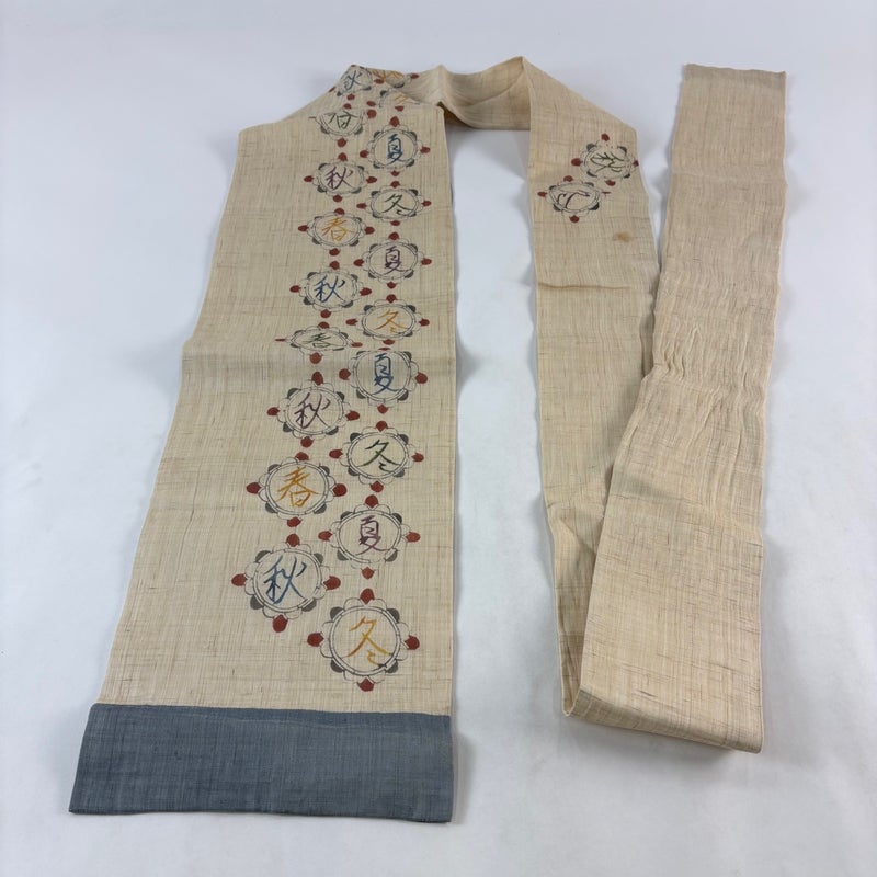 普段使いでお使いいただける名古屋帯でございます。 カジュアルな装いに合わせてお使いください。 締め跡がございます。 表地所々にヤケ、表地所々にシミ、表地所々にシワがございます。 ご購入の際はその点ご留意ください。 ※なお、厳しく商品の状態確認を行っておりますが、記載の汚れ以外にも見落とし箇所がある可能性がある旨ご了承いただけますと幸いです。 沢山の商品の中からご覧いただき誠にありがとうございます。