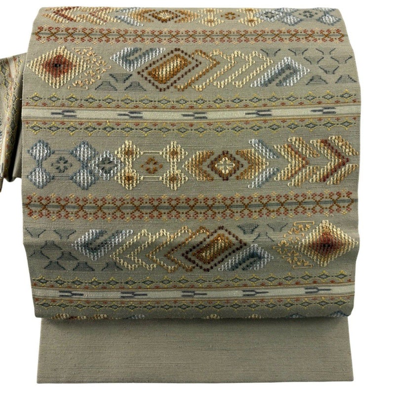【名古屋帯】 灰色系 灰緑 逸品 B 帯丈366cm~400cm 30000- 五万以上