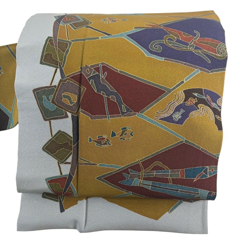 【着物ランク】秀品 【素材】正絹 【帯丈】約376cm 【帯幅】約30.5cm 【帯仕立て】仕立て上がり 【状態ランク】ランクB 【帯着用シーン】普段使いの洒落帯(紬・小紋)