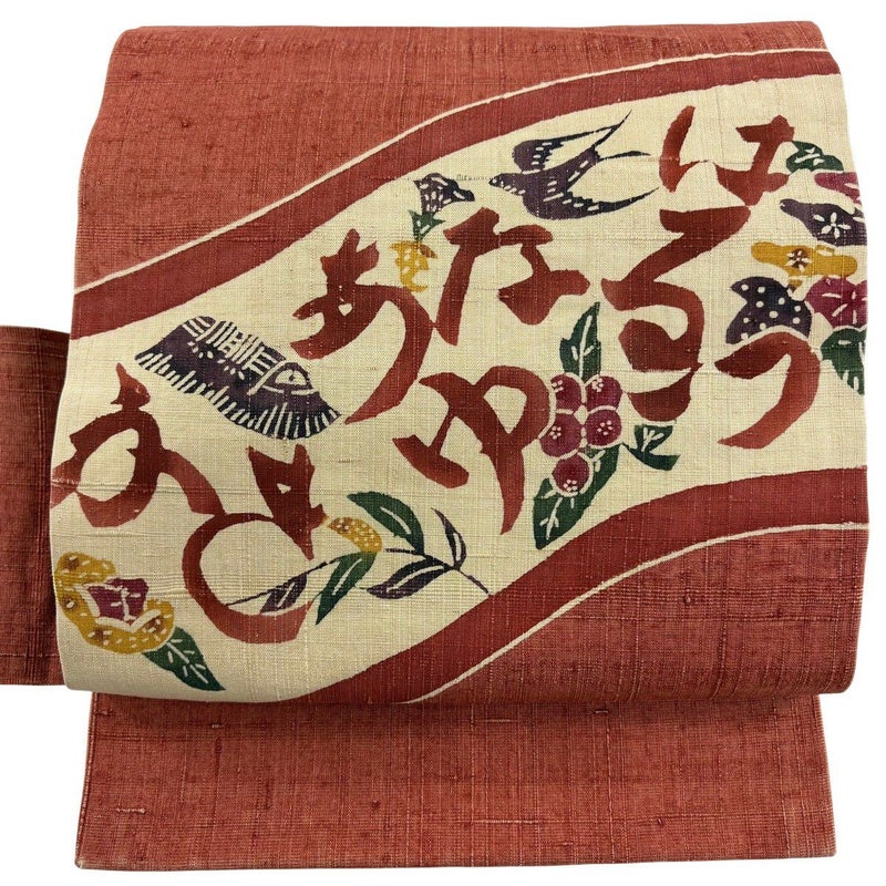 【名古屋帯】 赤系 朱色 秀品 B 帯丈355cm以下 7990-9980 二万以下