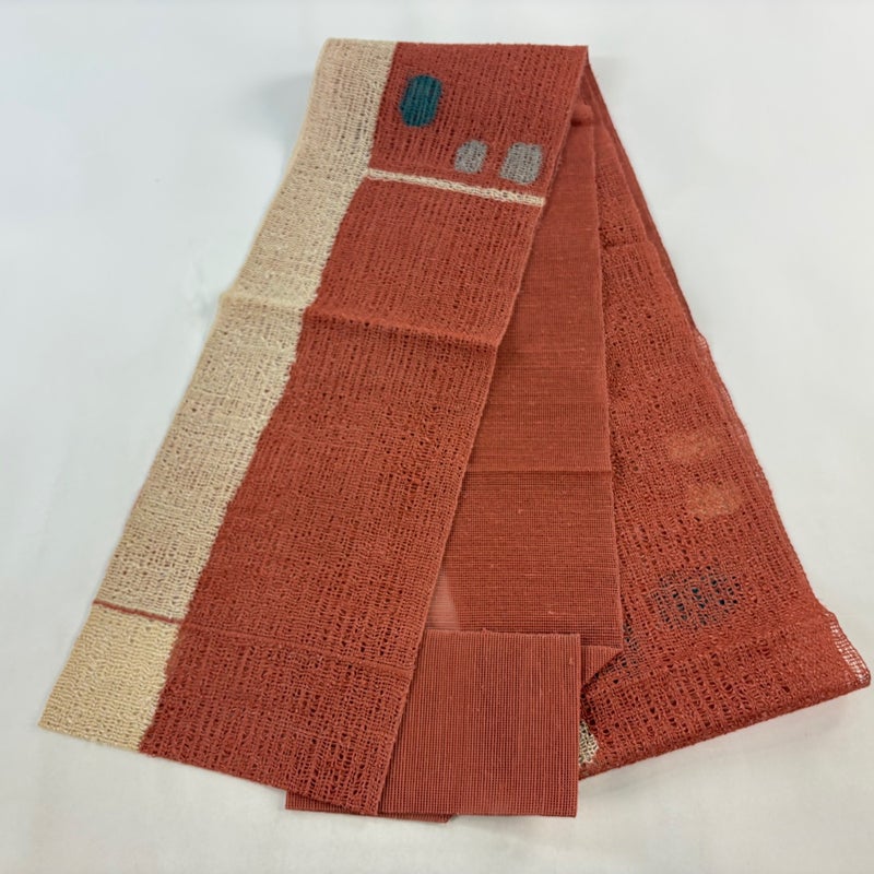 【名古屋帯】 赤系 ピンクベージュ 秀品 A 帯丈366cm~400cm 9990-29990 美品 二万以下