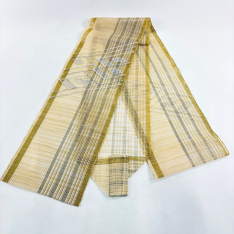 夏帯でございます。 普段使いでお使いいただける名古屋帯でございます。 カジュアルな装いに合わせてお使いください。 帯縁所々に糸つれがございます。 リユース品としては目立った染み傷なく、状態の良いお品でございます。 ※なお、厳しく商品の状態確認を行っておりますが、記載の汚れ以外にも見落とし箇所がある可能性がある旨ご了承いただけますと幸いです。 沢山の商品の中からご覧いただき誠にありがとうございます。