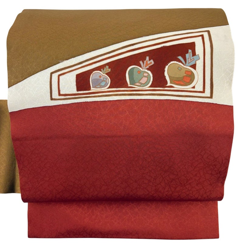 【名古屋帯】 赤系 茜色 秀品 A 帯丈356cm~365cm 9990-29990 美品 二万以下