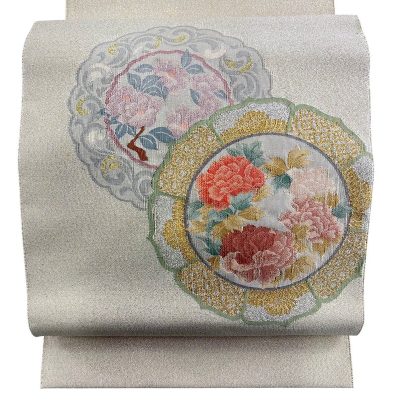 【名古屋帯】 白系 クリーム 秀品 C 帯丈356cm~365cm 7990-9980 二万以下