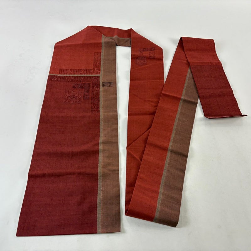 【名古屋帯】 赤系 えんじ色 秀品 B 帯丈401cm~425cm 7990-9980 二万以下