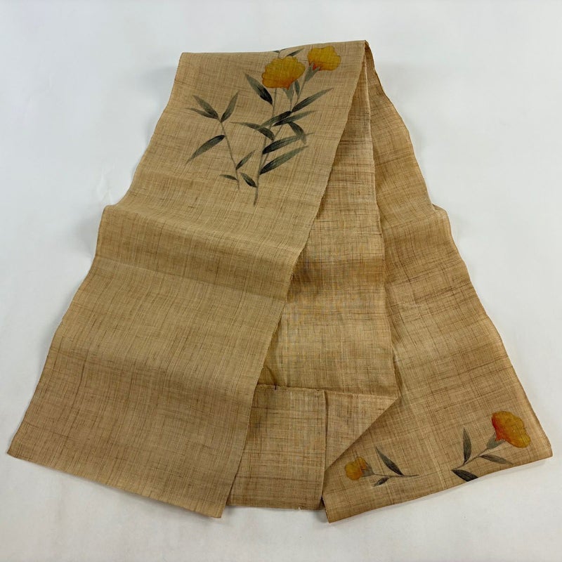 【着物ランク】秀品 【素材】麻 【帯丈】約369cm 【帯幅】約31cm 【帯仕立て】仕立て上がり 【状態ランク】ランクC 【帯着用シーン】普段使いの洒落帯(紬・小紋)