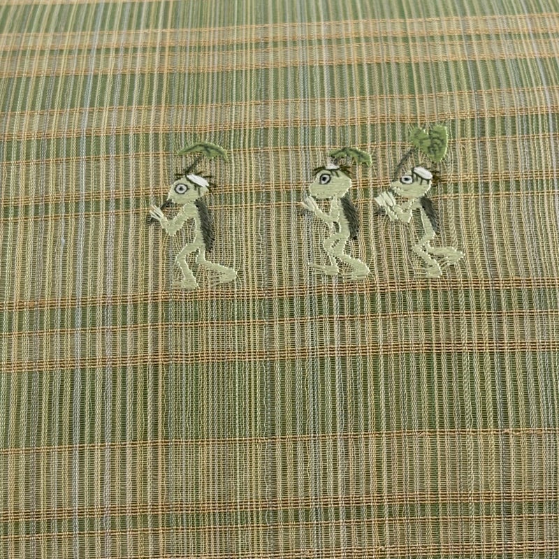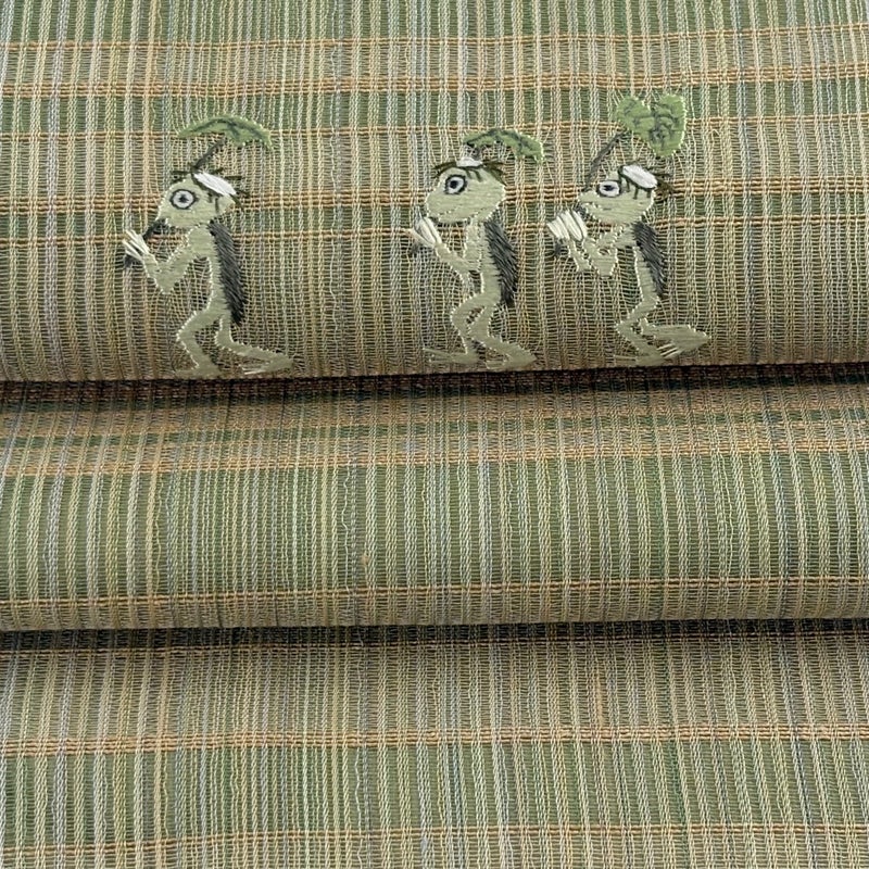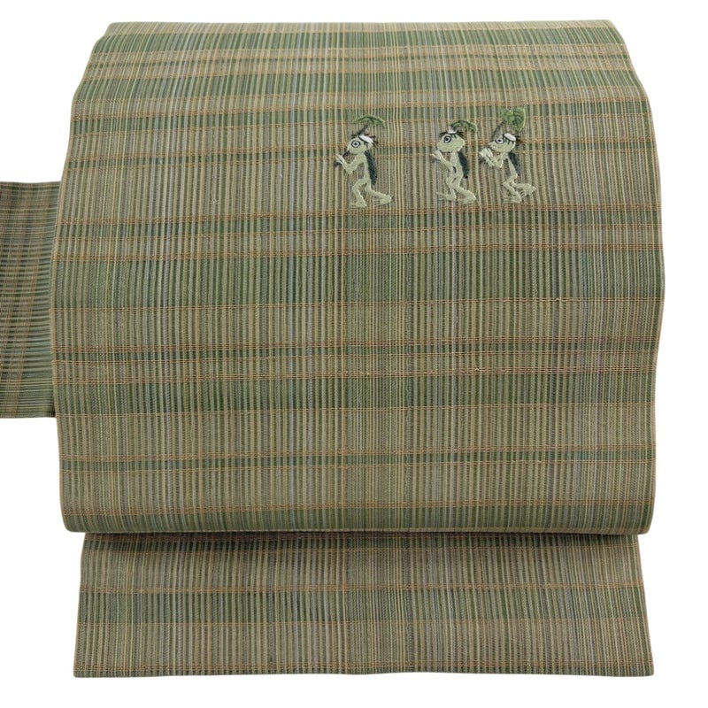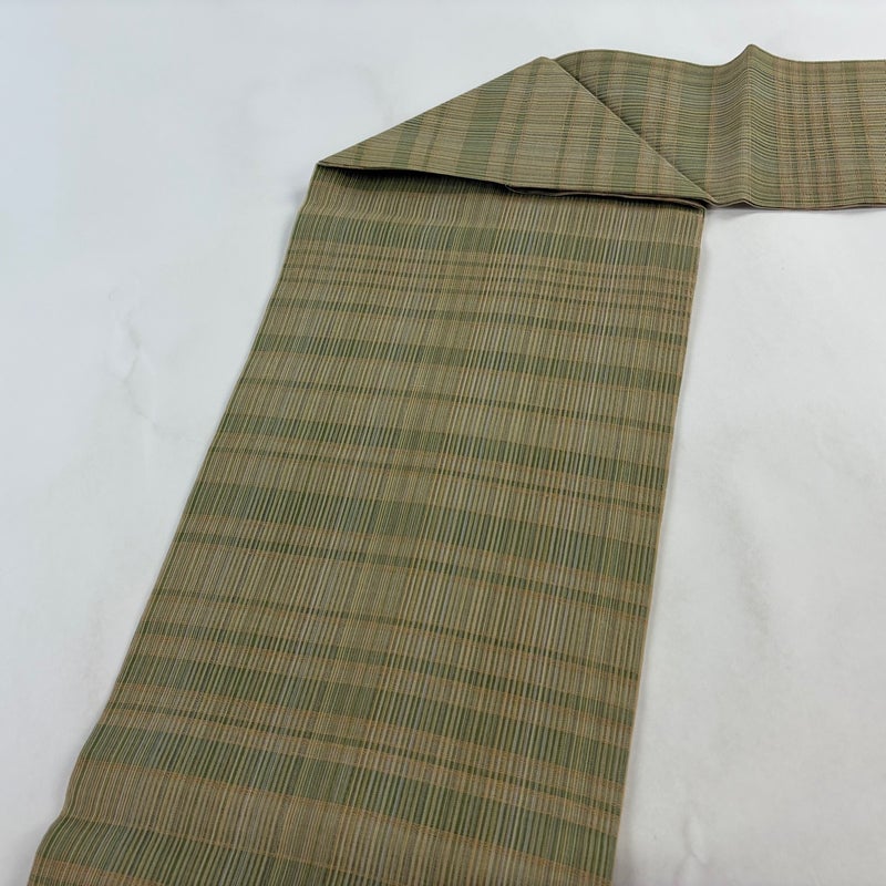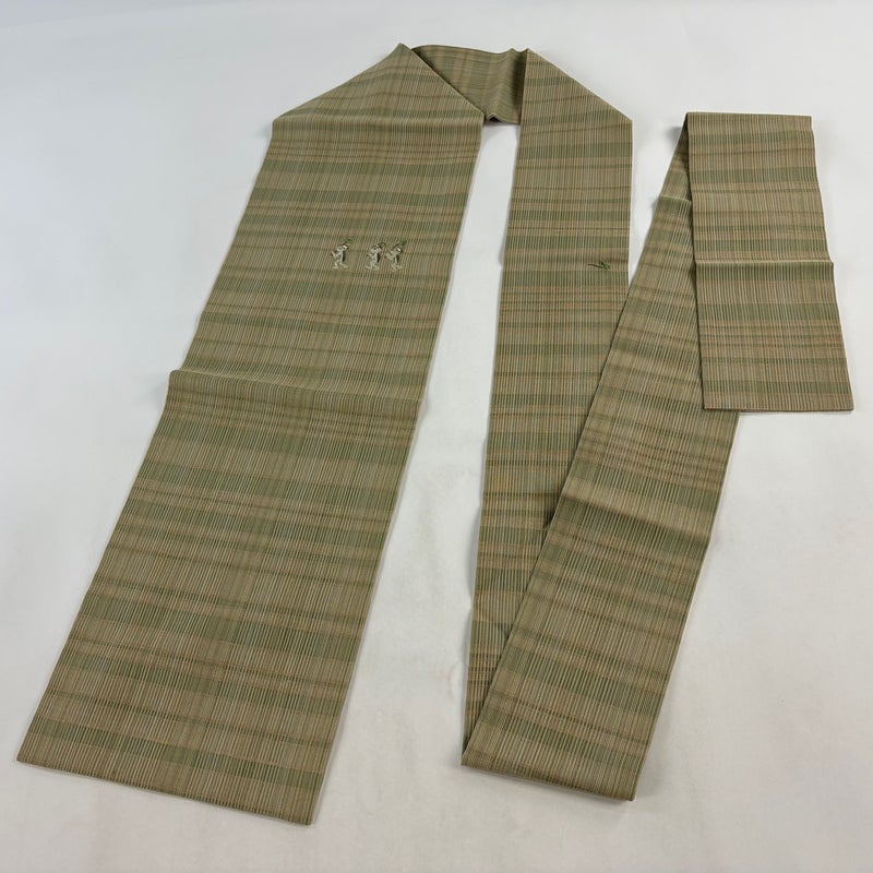 【名古屋帯】 緑系 よもぎ色 逸品 A 帯丈356cm~365cm 30000- 美品 五万以上