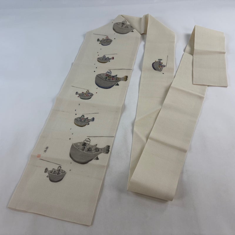 【名古屋帯】 白系 クリーム 逸品 A 帯丈366cm~400cm 30000- 美品 五万以下