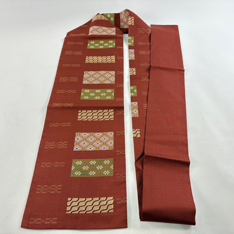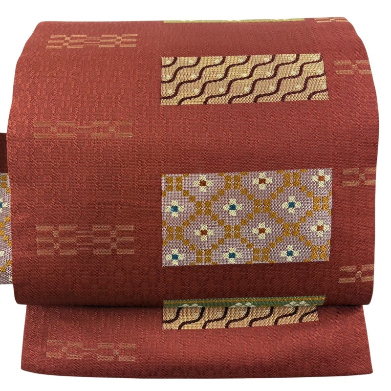 【名古屋帯】 赤系 赤茶 秀品 A 帯丈356cm~365cm 9990-29990 美品 二万以下