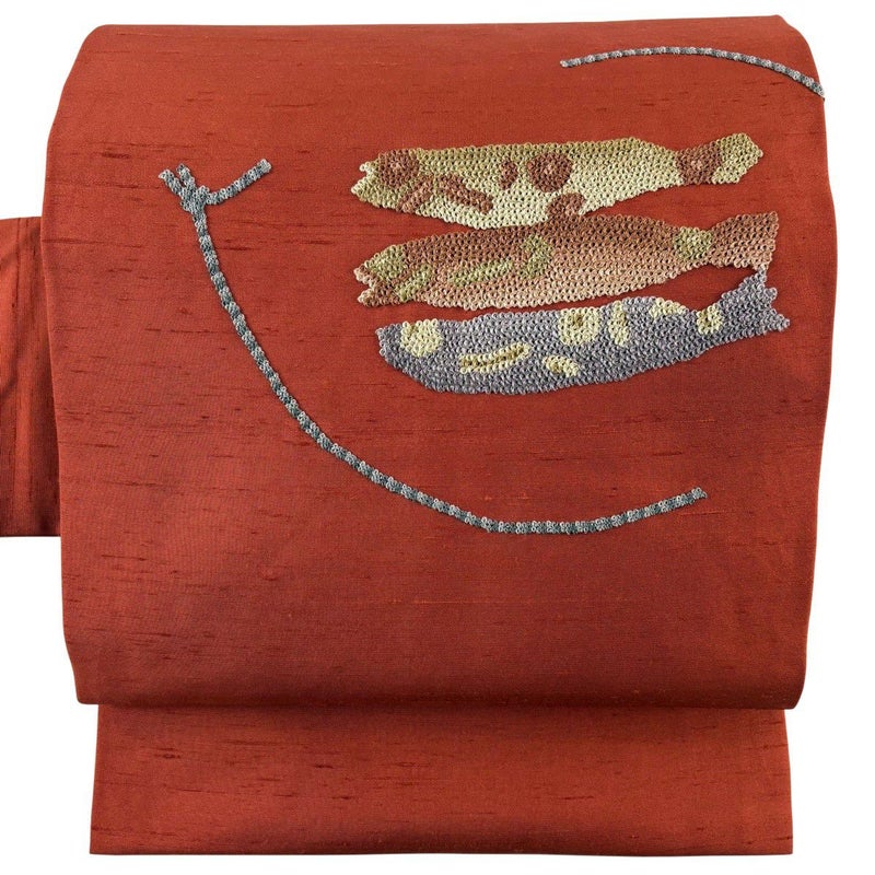 【名古屋帯】 赤系 朱色 秀品 A 帯丈366cm~400cm 9990-29990 美品 二万以下