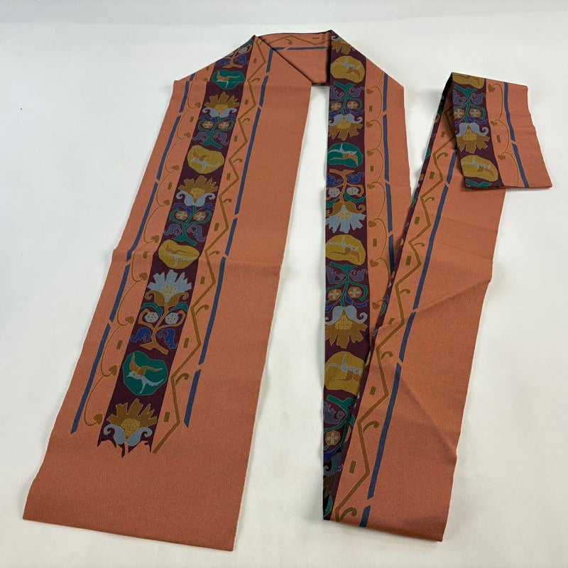 【名古屋帯】 赤系 ピンクベージュ 秀品 B 帯丈356cm~365cm 7990-9980 二万以下