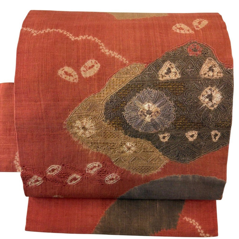 【名古屋帯】 赤系 朱色 秀品 B 帯丈366cm~400cm 7990-9980 二万以下