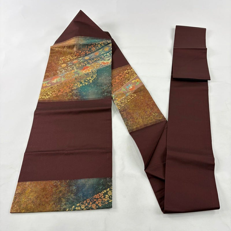 【名古屋帯】 赤系 赤茶 秀品 A 帯丈355cm以下 9990-29990 美品 二万以下