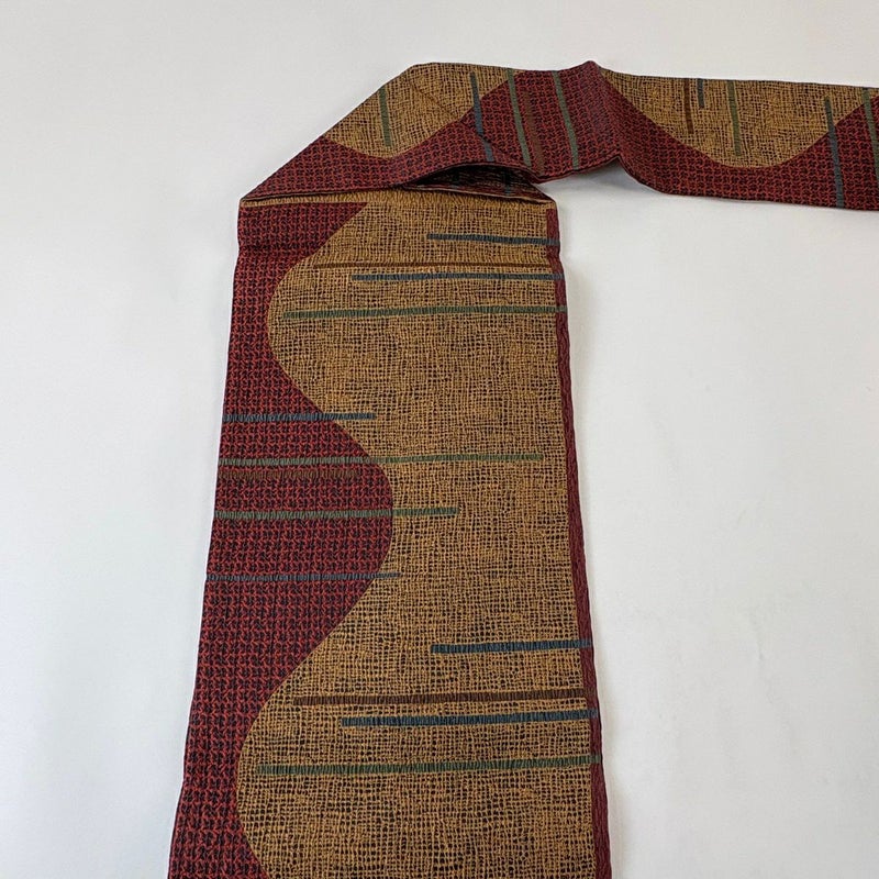 【名古屋帯】 赤系 赤茶 秀品 A 帯丈355cm以下 9990-29990 美品 二万以下