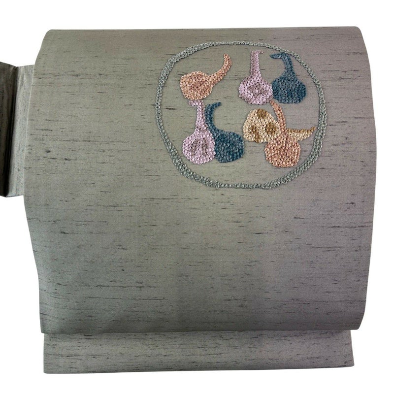 【名古屋帯】 灰色系 灰緑 秀品 A 帯丈356cm~365cm 9990-29990 美品 二万以下